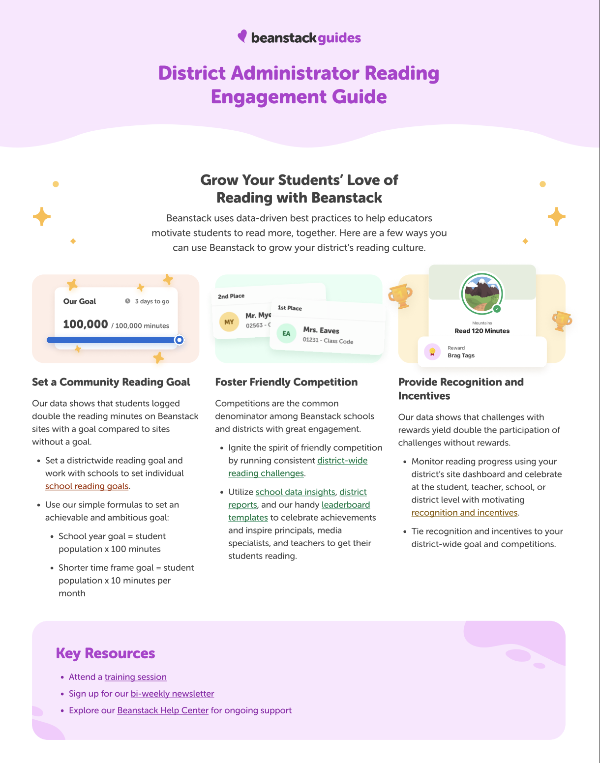 - Reading Engagement Guides (Teacher, Media Specialist, & District Administrator): These step-by-step guides break down best practices for growing the reading culture of your class, school, or district.